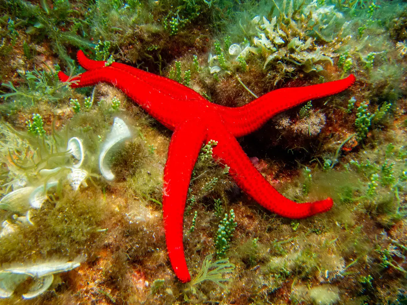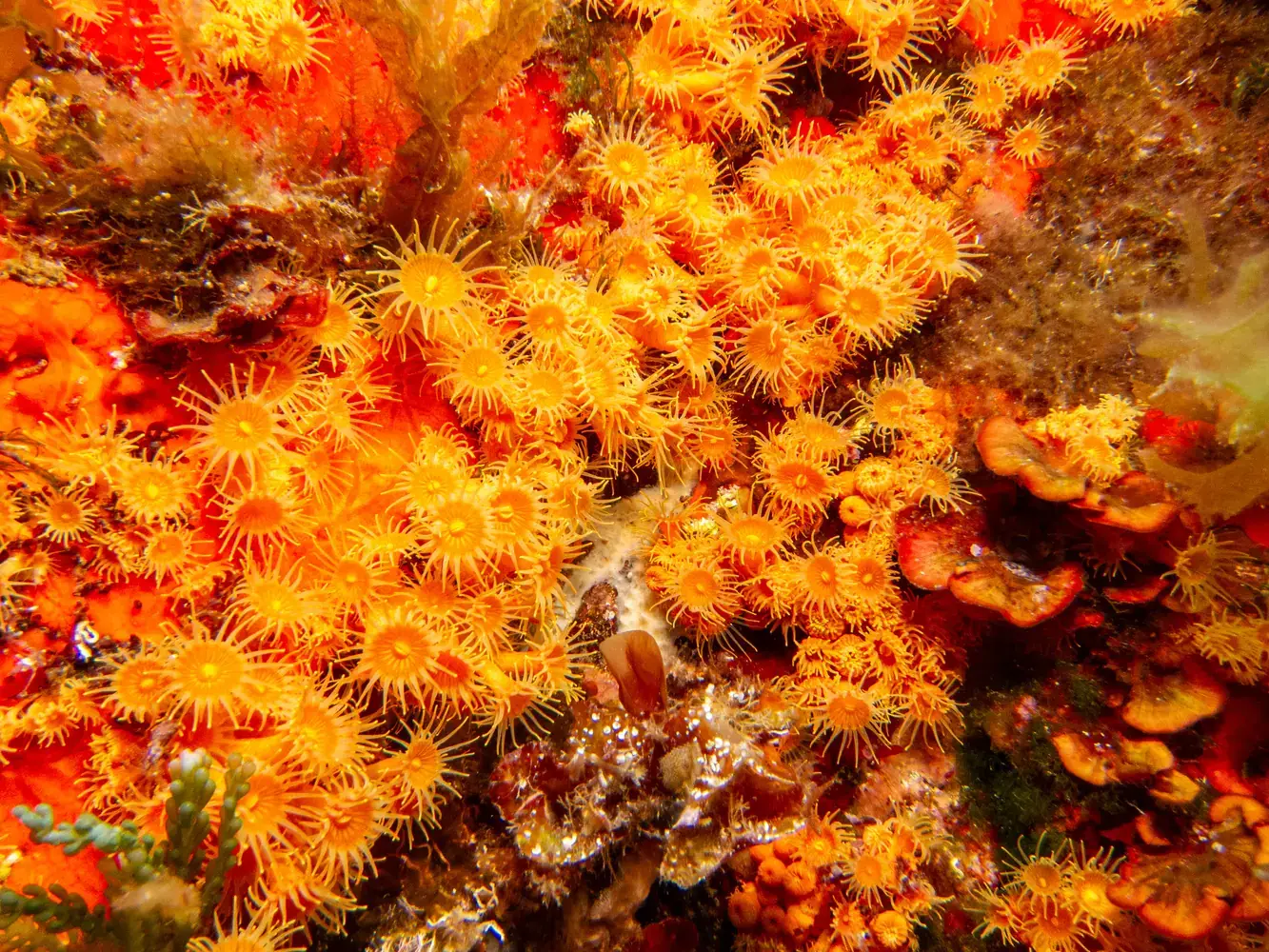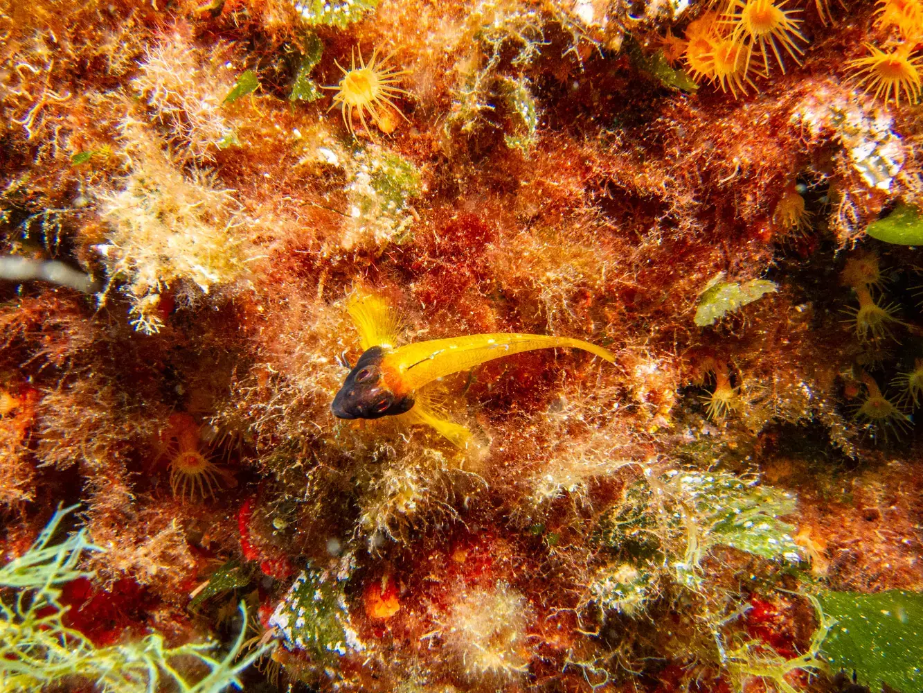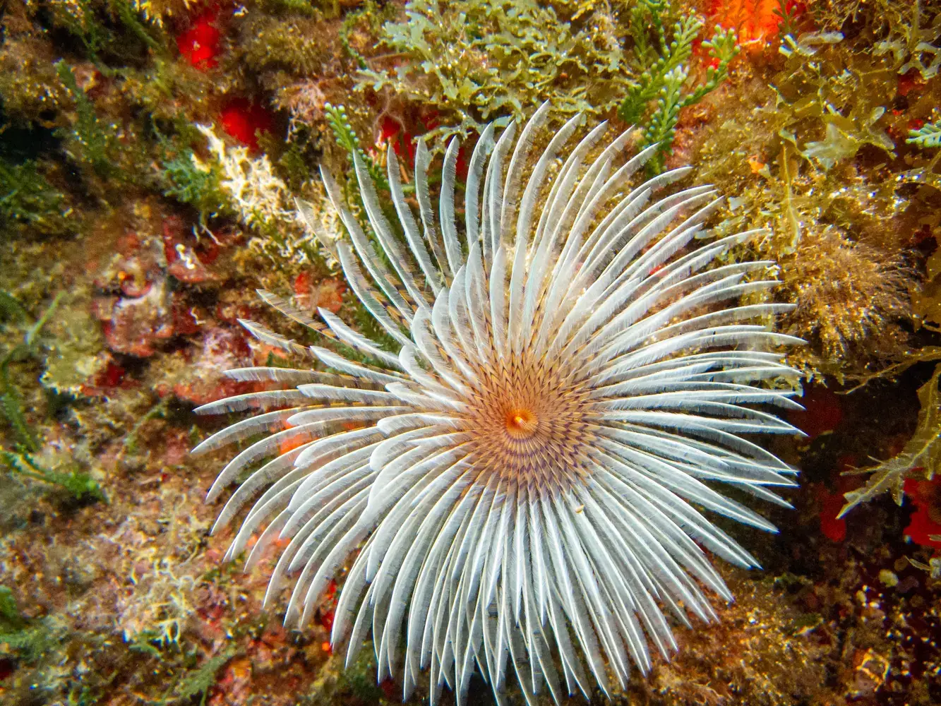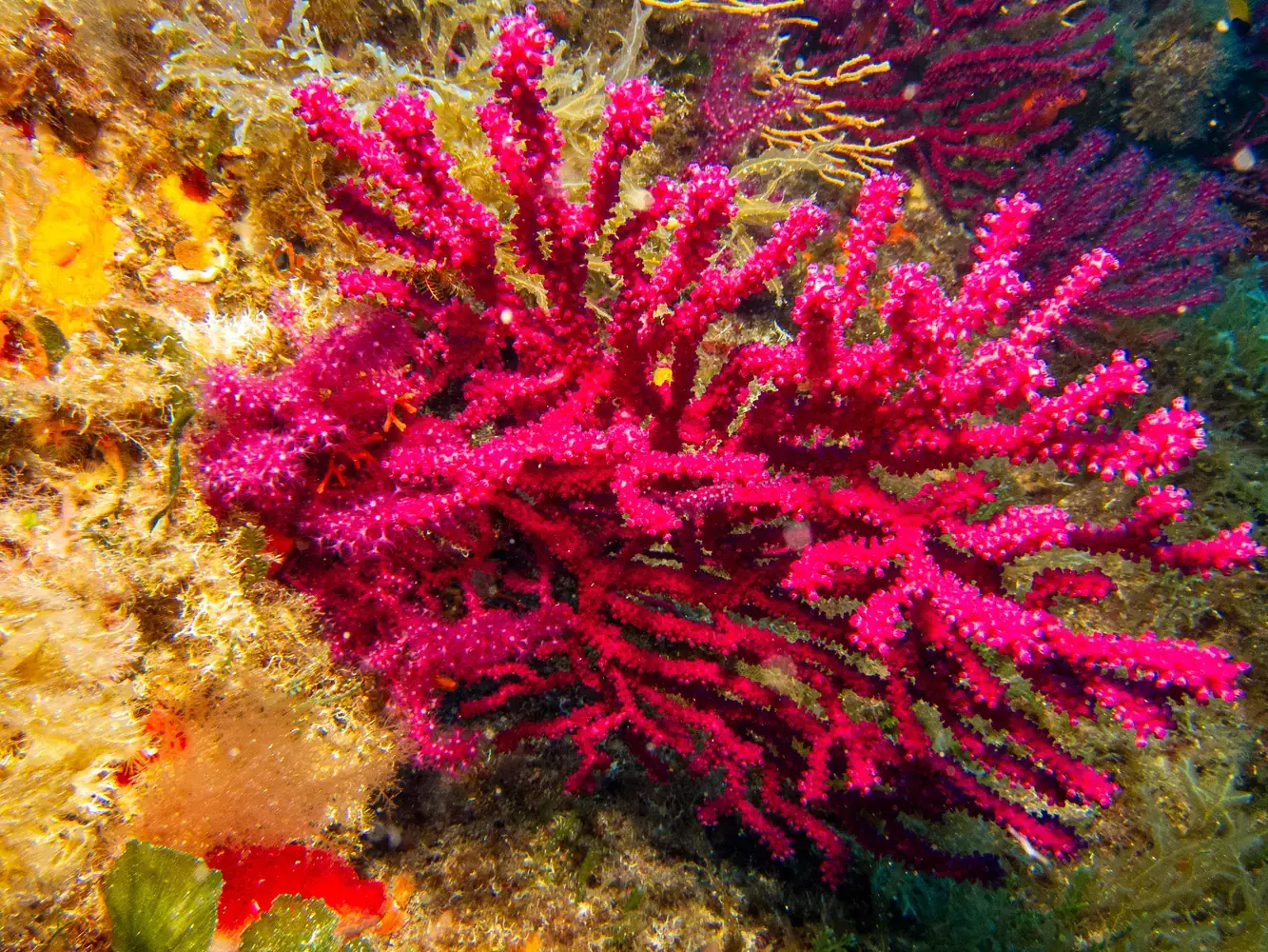 • Vie fixée : Gorgones rouges et blanches, corail, éponges. Les herbiers de posidonie, véritables « forêts » sous-marines, sont omniprésents et essentiels à l’écosystème.