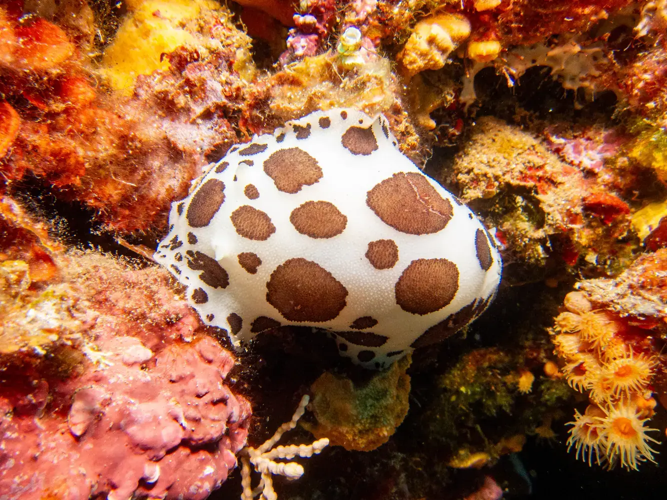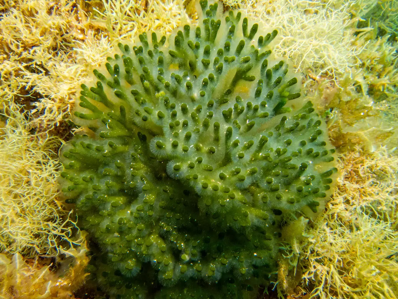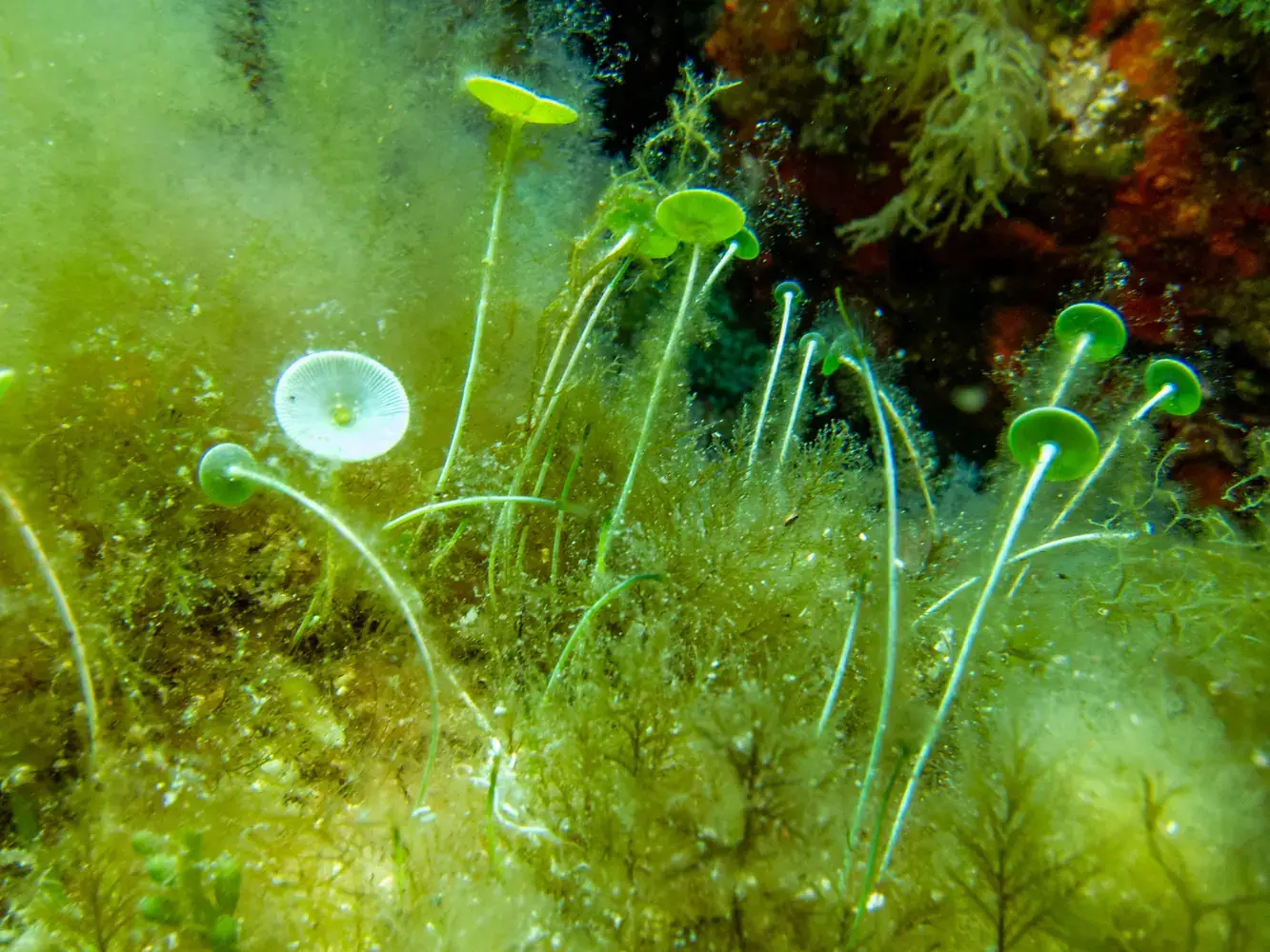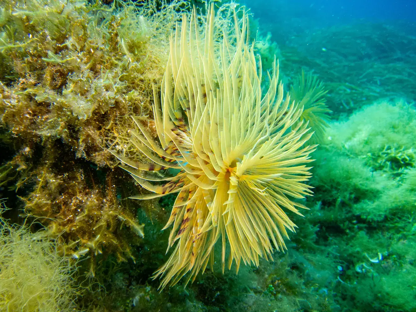 • Vie fixée : Gorgones rouges et blanches, corail, éponges. Les herbiers de posidonie, véritables « forêts » sous-marines, sont omniprésents et essentiels à l’écosystème.