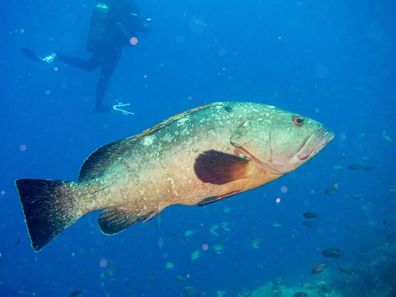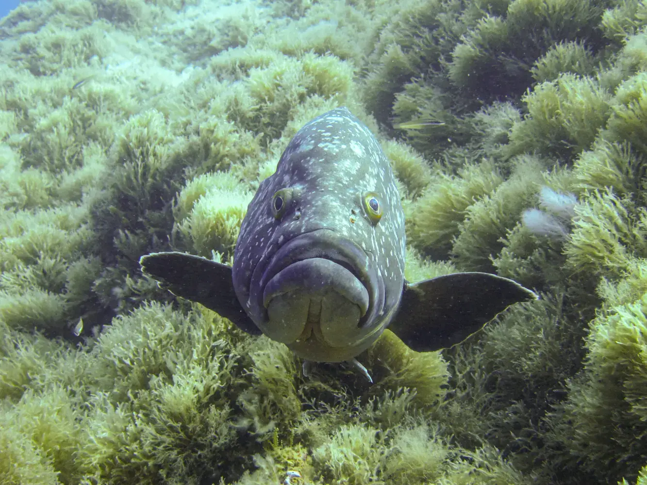 • La Gabinière Est et Ouest : Ces deux tombants qui plongent à pic vers 40-50 mètres sont LE spot pour observer les mérous. Ils y sont nombreux, curieux et peu craintifs. Vous y verrez aussi des nuées de corbs (brown meagre), des mostelles, des congres et, avec un peu de chance, des dentis.