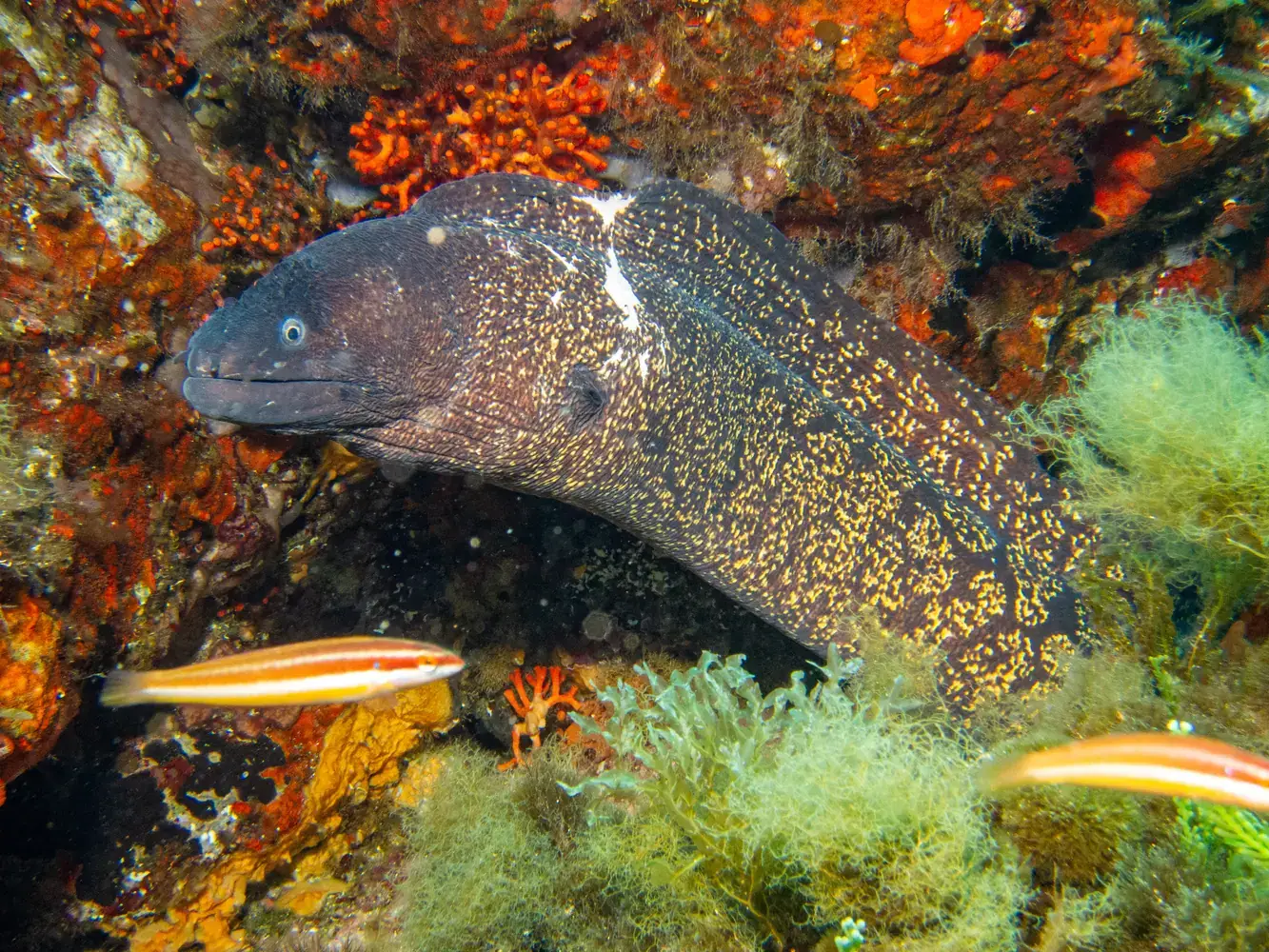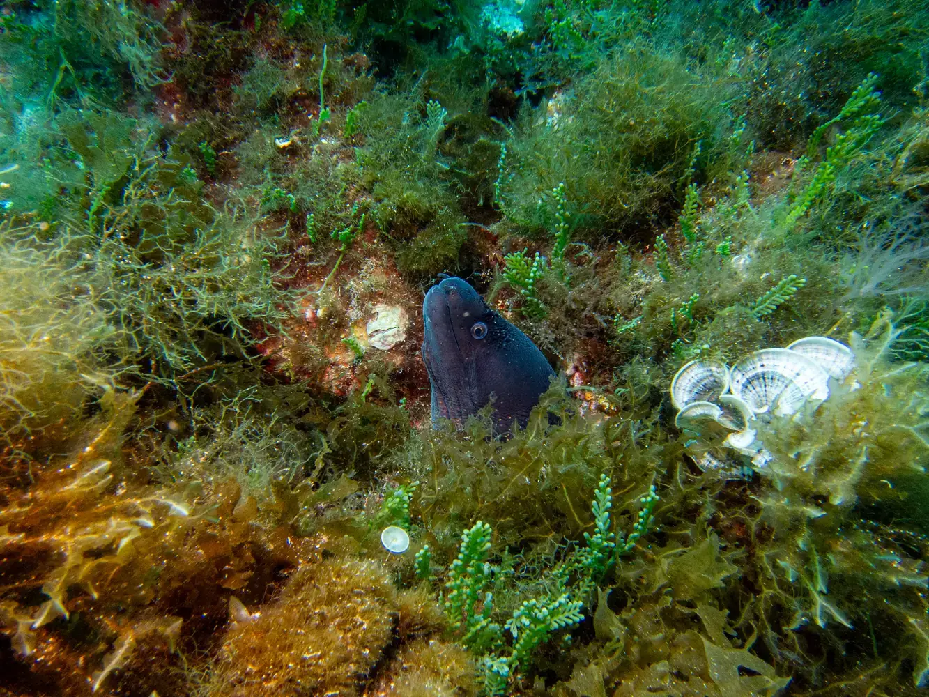 • Autres rencontres : Poulpes, murènes, congres, grandes nacres (protégées), et parfois des raies pastenagues. Avec une chance incroyable, on peut même croiser un dauphin ou une tortue caouanne.